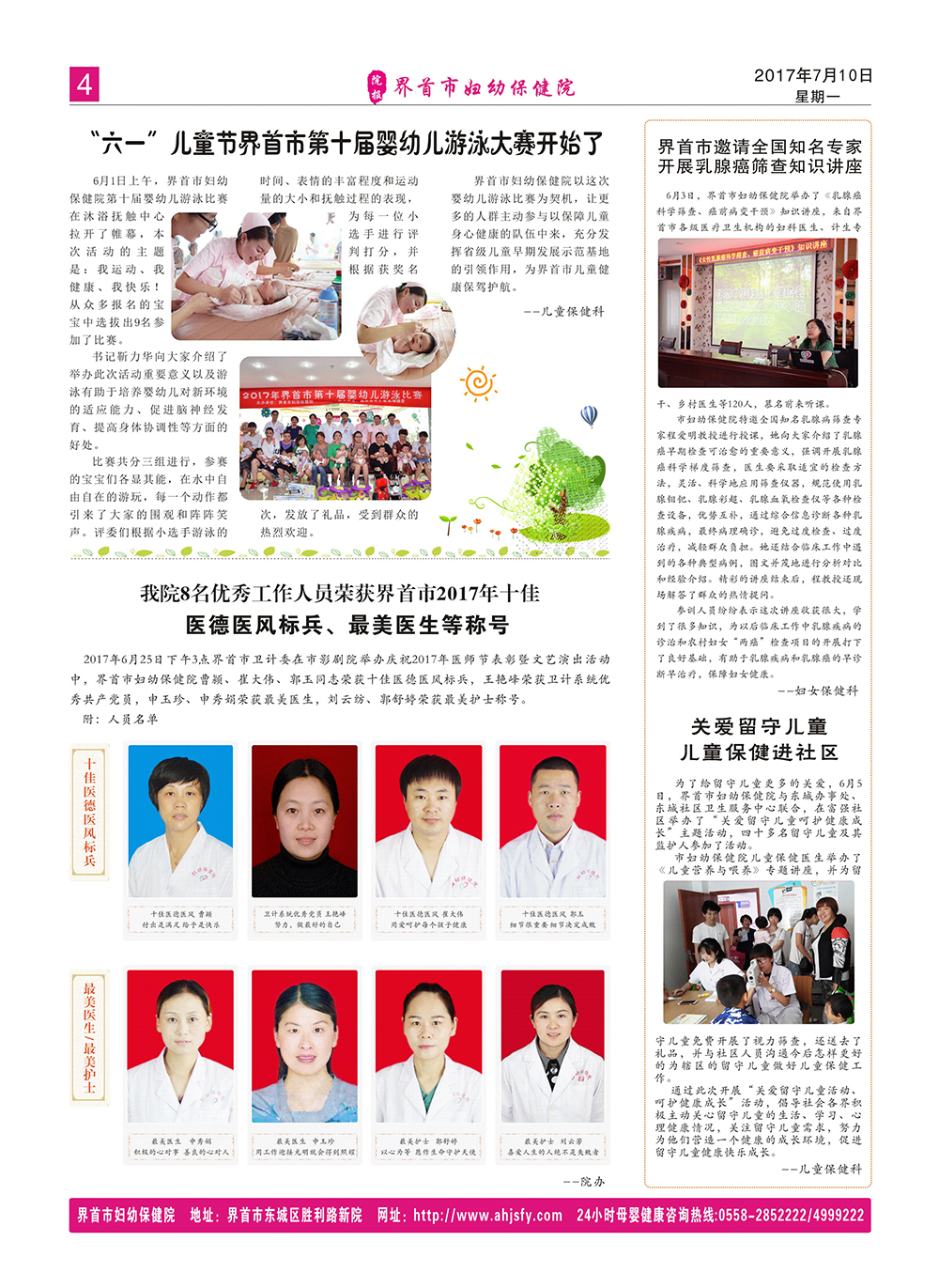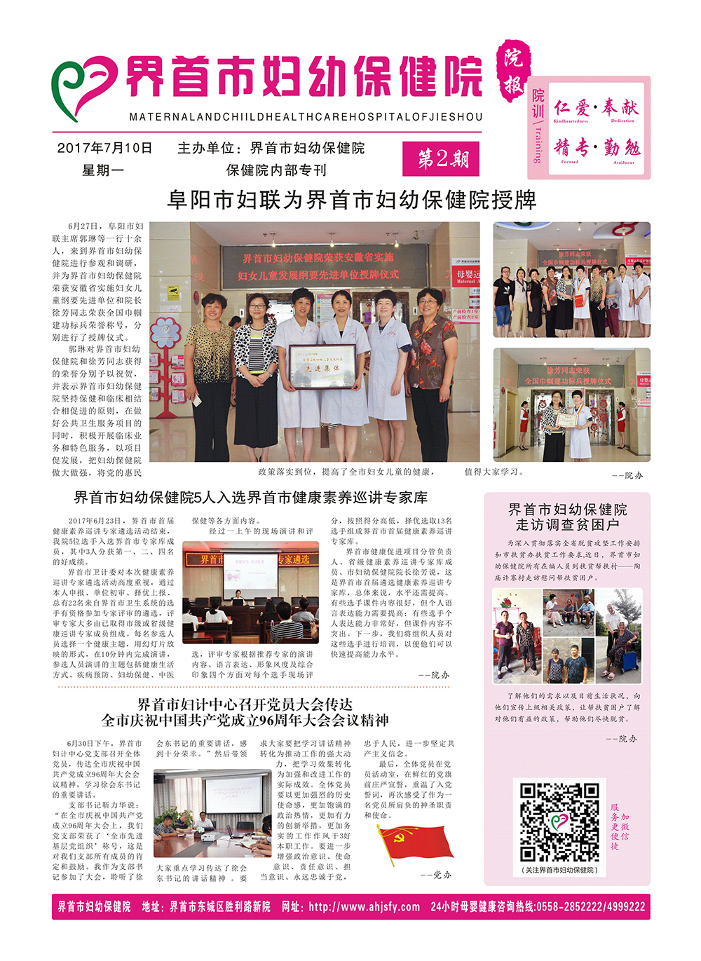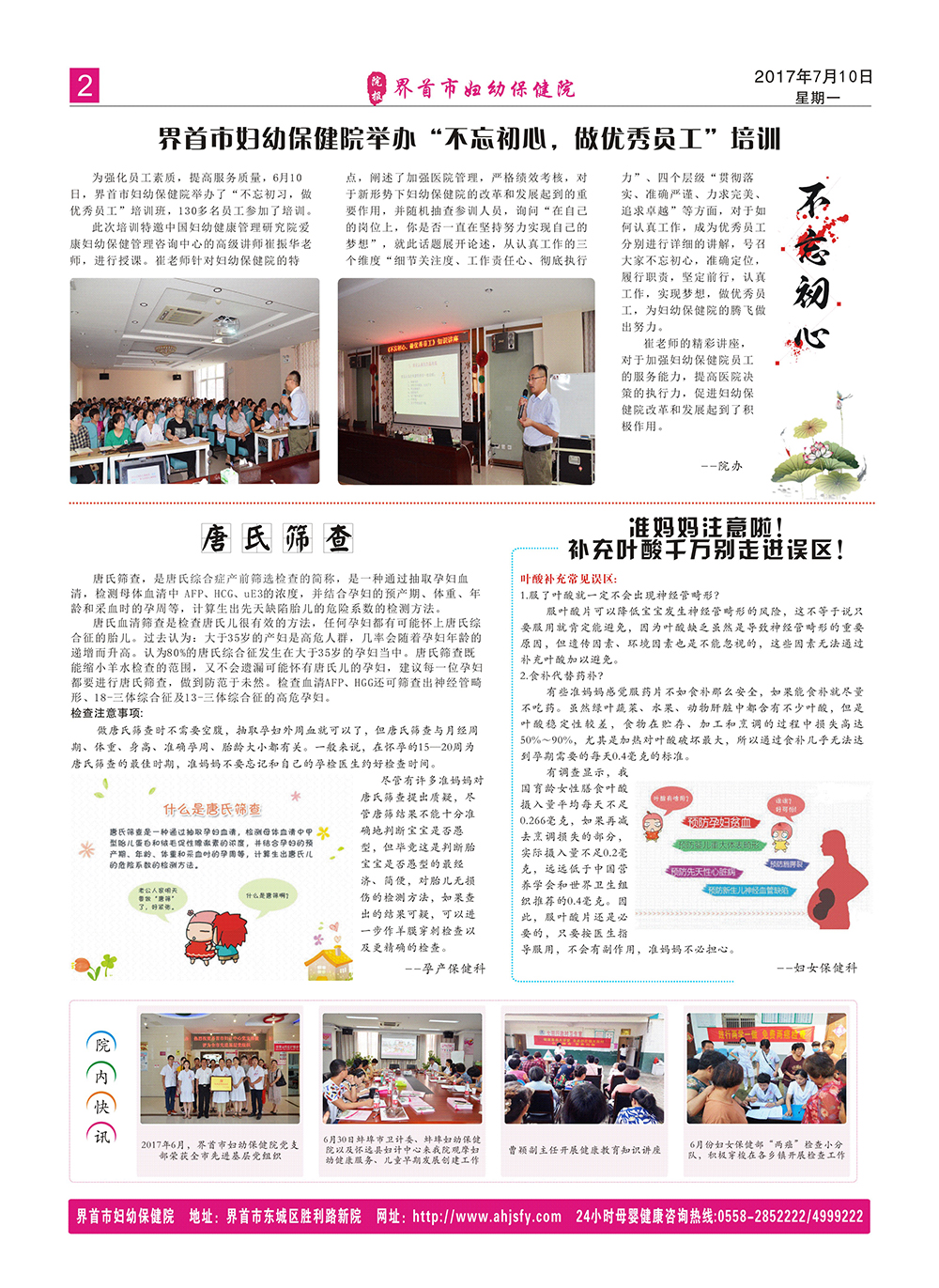 24小时母婴健康咨询热线:0558-4999222 住院分娩24小时免费车接热线:15357858999 15357858998